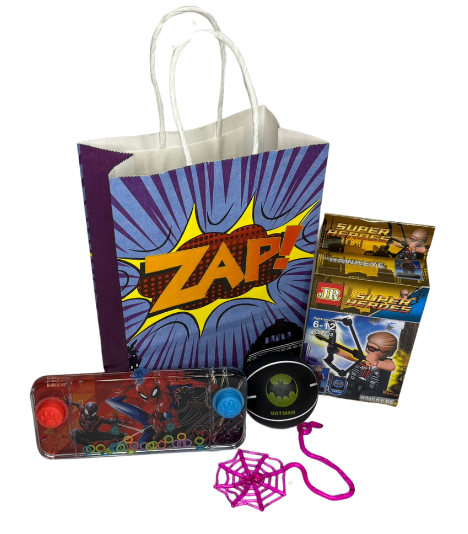 This super-powered party bag is packed with everything your little hero needs for non-stop fun: If you have a specific type of superhero bag you are after (for example Girl Power!) please drop a comment in the order and we will make sure your Superheroes are taken care of! |