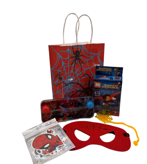 Unleash your inner superhero with this action-packed Spiderman party goody bag! Packed with all the essentials for a day of hero fun, each bag contains: If you have a specific type of Spiderman bag you are after (for example Ghost Spider or Spin) please drop a comment in the order and we will make sure your Superheroes are taken care of!Β |
